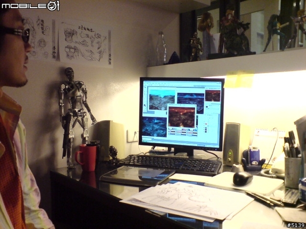 感觸的說著戰鬥場景常常因為大小限制而犧牲掉原先預訂套用的數張背景
